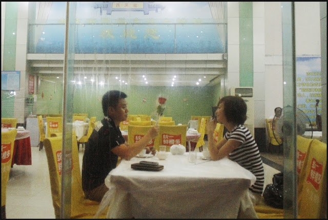 | Una pareja en un restaurante de Hennan. |